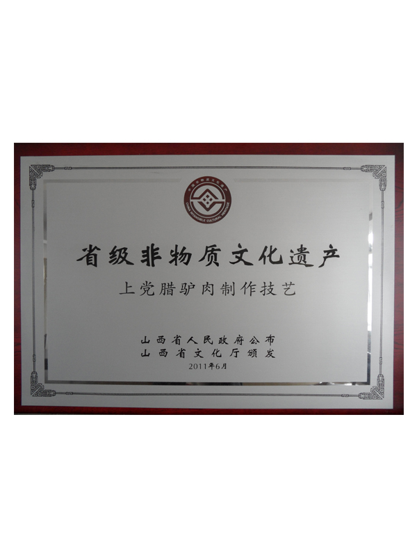 《本草綱目》第五十卷記載有:“驢肉味甘、無毒、解心煩、止風(fēng)狂、能安心氣、補(bǔ)血益氣、治遠(yuǎn)年勞損”的作用,尤其對(duì)失眠、健忘、眩暈、營(yíng)養(yǎng)不良、貧血癥有獨(dú)特療效。上黨臘驢肉是山西長(zhǎng)治市的漢族傳統(tǒng)名吃,其肉質(zhì)肥而不膩、瘦而不柴、香味四溢、回味無窮。早在明代,臘驢肉就已馳名于上黨和晉南地區(qū),產(chǎn)品遠(yuǎn)銷北京、天津、南京等南北名城。臘驢肉與當(dāng)?shù)氐臎龇邸⑺只馃环Q為潞安府(長(zhǎng)治古稱潞安府)三寶。